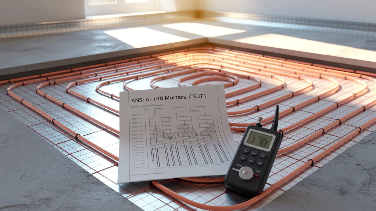 If sustainability is your priority, look into eco-friendly ceramic materials with post-consumer materials and environmentally safe adhesives. For those implementing radiant floor heating, make sure your materials are rated for heated floor systems, incorporate isolation membranes, and comply with thermostat sensor placement guidelines. Make sure to coordinate joint dimensions and grout selection with movement accommodation joints as outlined in TCNA EJ171.